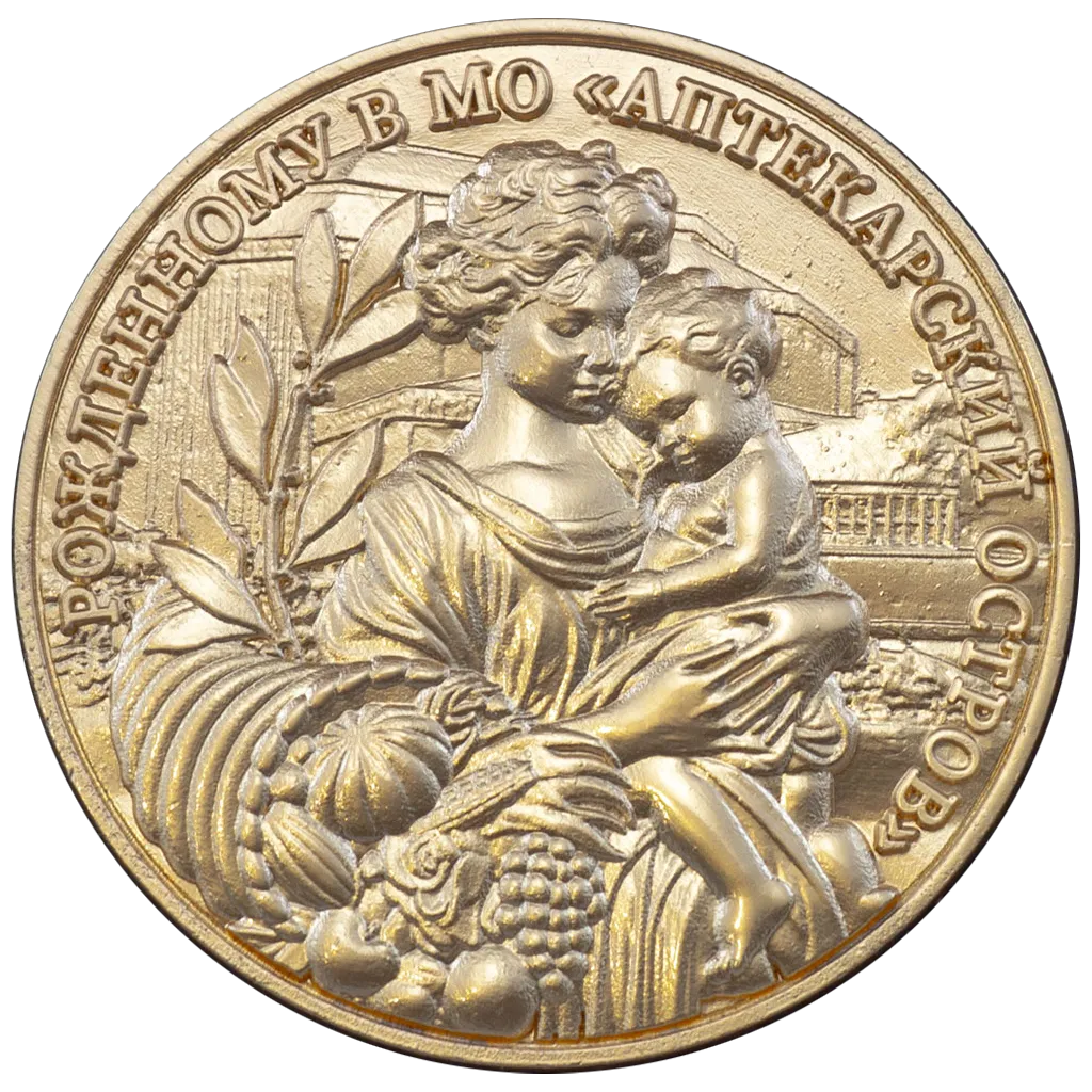 ГлавнаяПродукцияНаградные знаки и медалиМедалиМедаль "Рожденному в МО Аптекарский Остров"